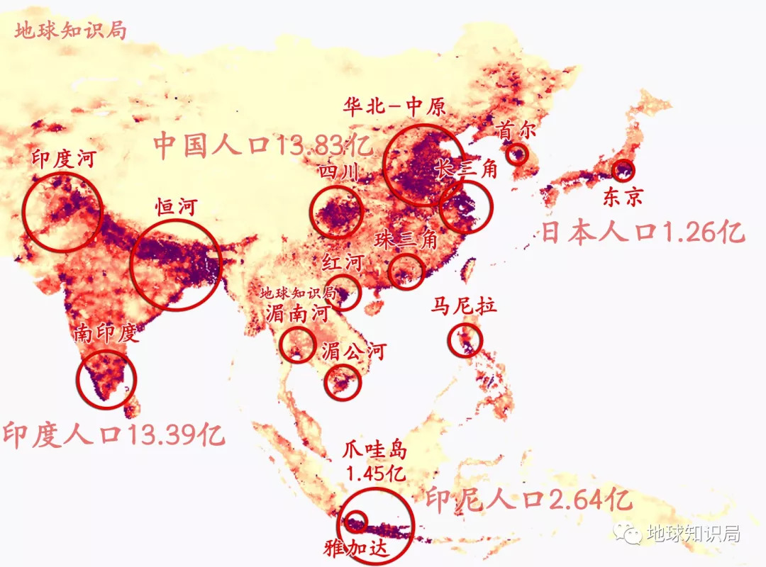 东亚和南亚生活着世界上将近一半的人口