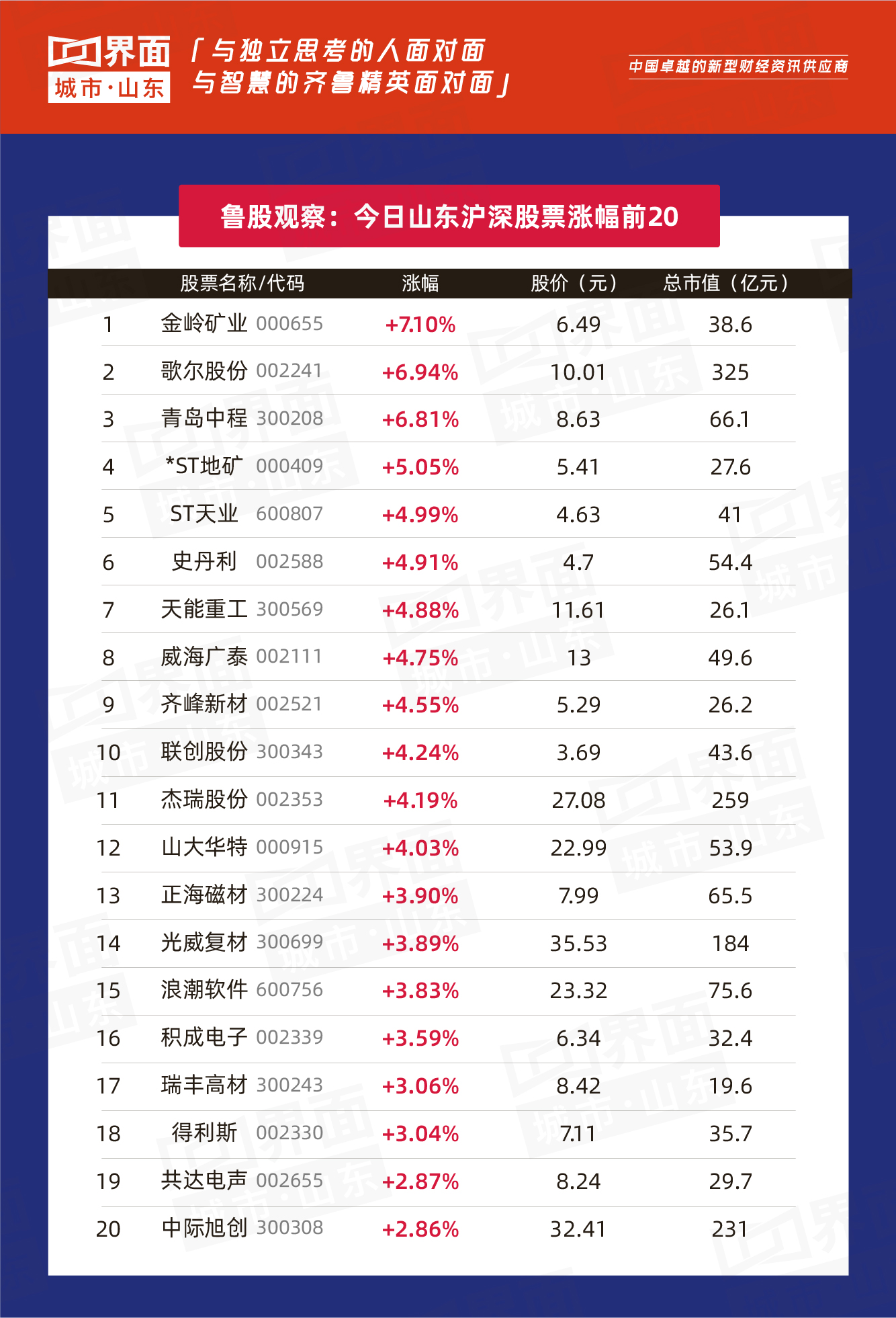 7. 个股优秀表现:今日鲁股个股均无突出表现,沪深主板、中小板、科创板等涨幅榜单均未能上榜。
