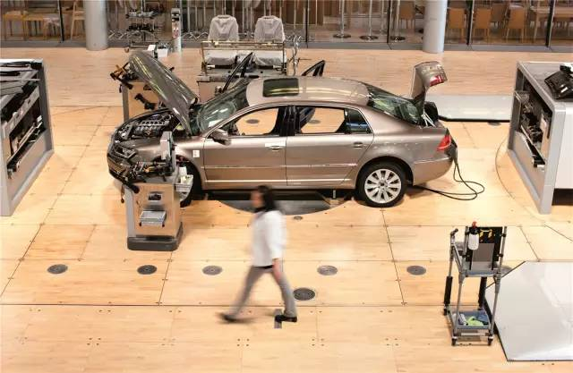 >>>大众汽车工厂的整个生产线分成了两层,对于一般汽车生产企业而言,生产线是在同一层,因为采用两层布局的生产线会导致运输难的问题。当时建筑师没有采用较大的占地面积,而是采用了立体化的解决方案,通过电梯运输的方式,把整个生产线变得更加顺畅。生产车间里没有刺激性的气味和刺耳的声音,感觉如自家客厅一样舒适。