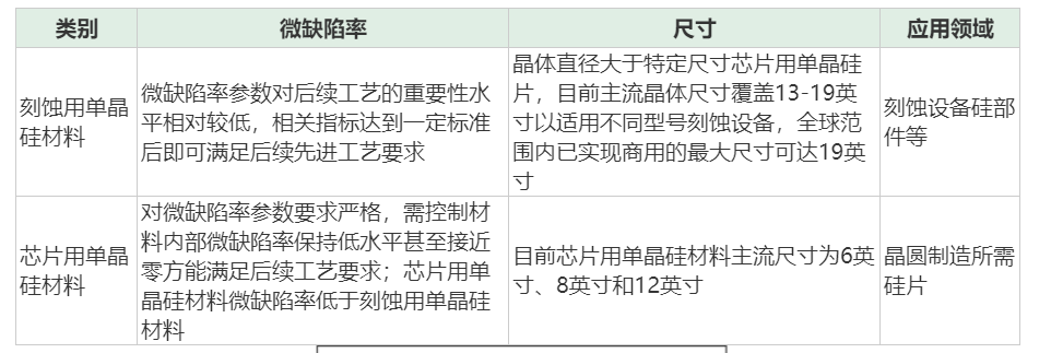与芯片用单晶硅材料相比,刻蚀用单晶硅材料对工艺要求低、直径大。目前前沿芯片用硅片最大能做到12英寸,12英寸芯片需要配套14英寸以上的单晶硅材料,公司的单晶硅材料目前最大尺寸能做到19英寸。