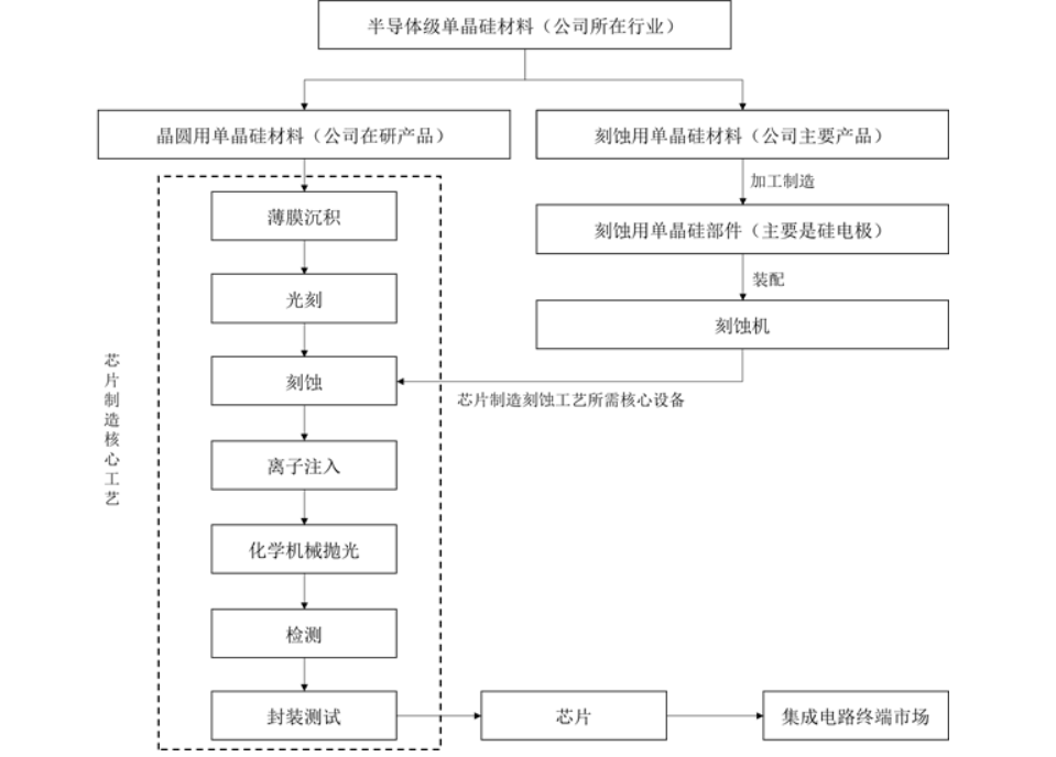 上交所曾在问询意见中表示,公司不直接生产刻蚀用单晶硅部件,要求公司删除或修改招股书相关内容,避免投资者产生“公司为半导体行业公司”的误导。同时,要求公司准确描述主要业务,删除“半导体硅材料”、“半导体单晶硅部件”等可能产生误导的表述。