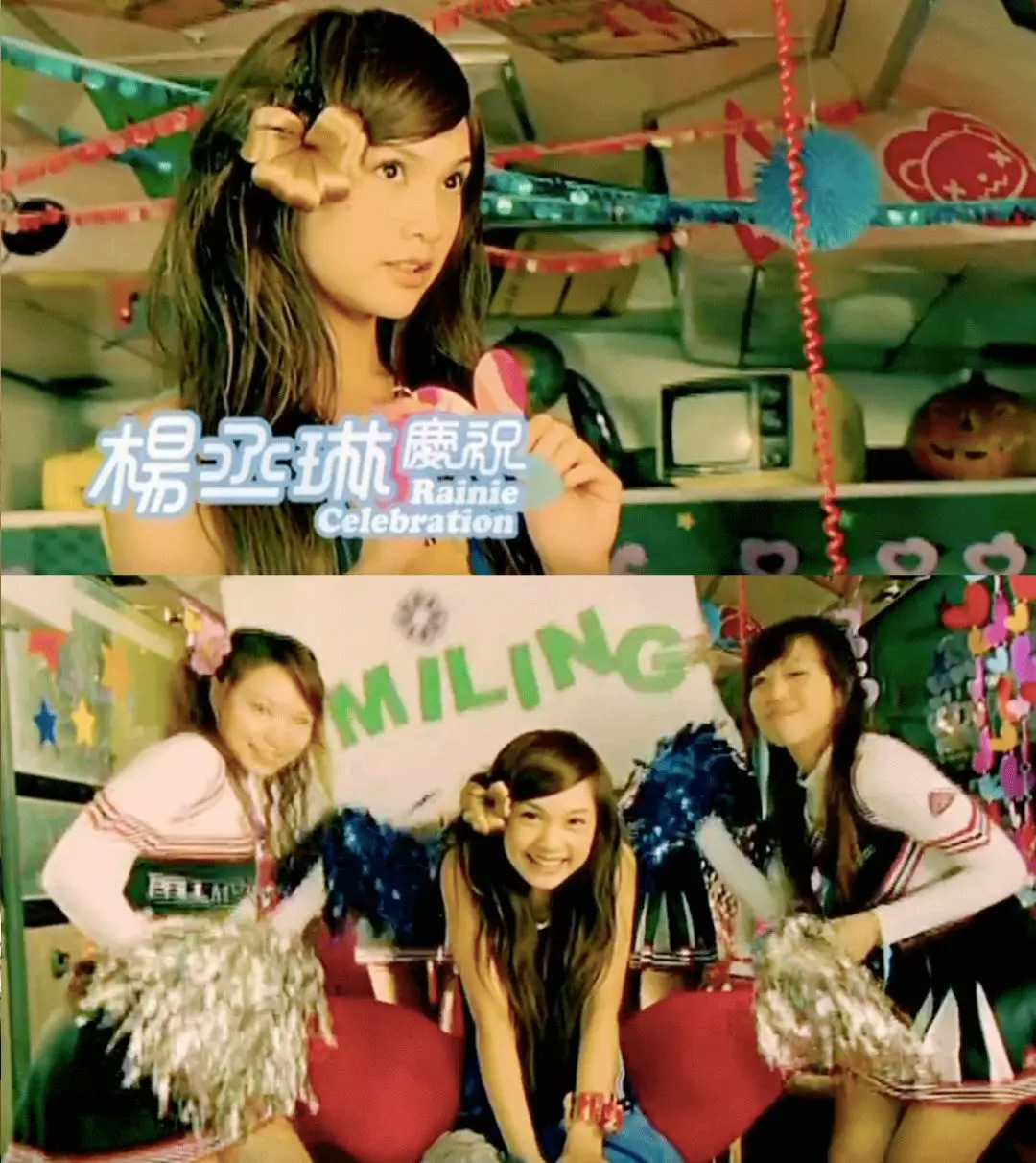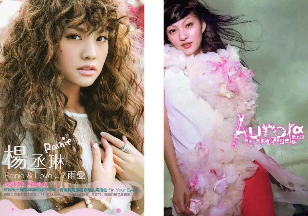 那时候她们走的都是甜美可爱路线,被并称为台湾三小天后,各自涌有现在看来特羞耻的法号:什么甜心教主、可爱教主、电眼教主……