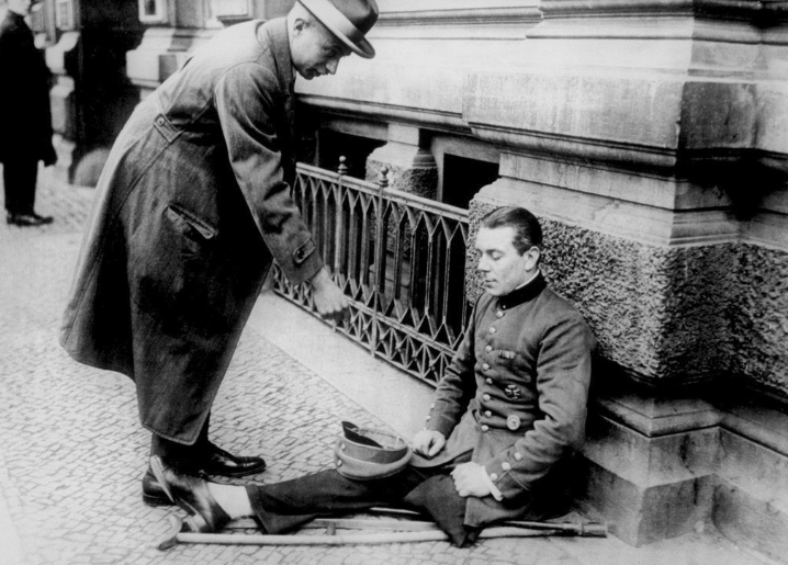 1919年初起,数百万在前线鏖战四年的德军士兵开始陆续归国。尽管其中大部分士兵乐意回归正常生活,但据德国历史学家克鲁迈希(GerdKrumeich)统计,当时仍有大约四十万士兵不愿意放下武器。对于这些荣誉感强烈的老兵而言,归国后等待他们既不是理解更不是凯旋门,仅仅是漠视。没有给予牺牲士兵的追念,也没有针对伤残士兵的特殊补贴,所有伤残士兵待遇均和残疾人相同。