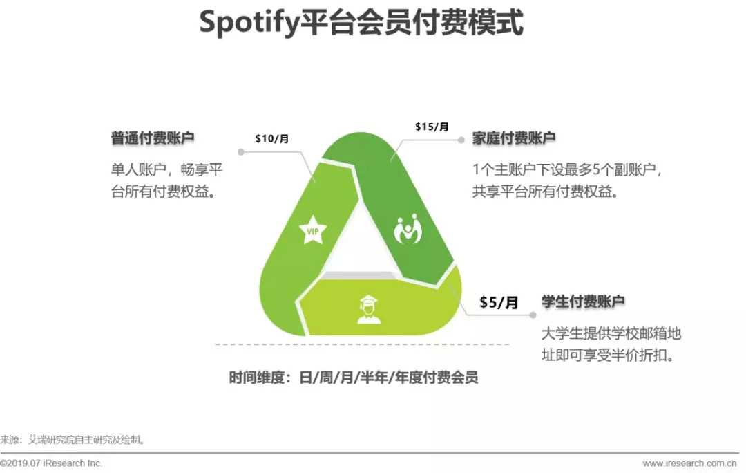 另一方面,根据艾瑞调研结果来看,学生用户具有明显较高的数字音乐付费TGI,因此平台也可以效仿Spotify机制,设立学生账户机制,并为学生群体提供专属的折扣,尽管会降低一定的ARPPU值,但对于提升付费用户数量和用户黏性都能起到较好的作用。