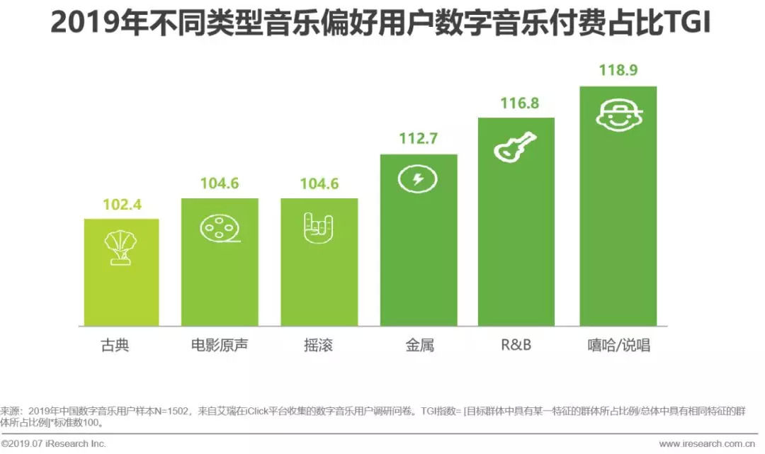 欧美和日韩音乐爱好者及小众音乐爱好者具有更高付费意识