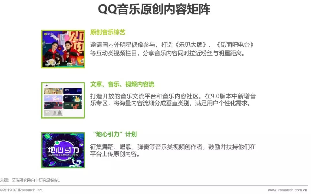 投资原创内容不仅能够帮助平台减少版权购入成本和开拓新的商业模式,更能够增强平台的差异化,从而提升用户付费金额。根据公开财报,可以发现:随着流媒体视频巨头Netflix在原创内容制作方面投资的增加,其单个用户价值(付费收入/用户数量)也有了明显提升,而在调研中,有36.1%的用户会为数字音乐平台音频和视频节目付费,这说明投资原创内容在提升用户付费金额方面是行之有效的策略。在中国,也有领先的数字音乐平台开始在原创内容领域进行尝试,例如QQ音乐围绕音乐内容构建起了完整内容生态,在其新增的“发现”栏中引入视频和文章的内容流,并在9.0版本升级中添加推荐tab,按照算法为用户进行个性化的内容推荐,逐步形成差异化优势。