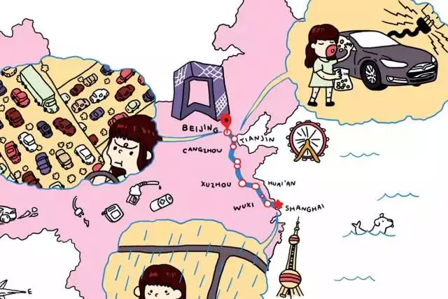 一个周一的早上,上海外滩下着毛毛雨。我的黑色特斯拉Model S 85在早高峰时段缓慢移动着,今天起,我要驱车1300公里前往北京。这不是一次普通的自驾游。我要验证特斯拉汽车(Tesla Motors)创始人埃隆·马斯克(Elon Musk)今年2月的那番言论是否属实。他曾说,中国车主担心购买电动车后难以到充电站,这种担忧完全没有必要。