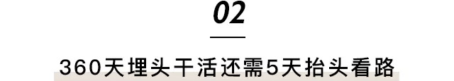 在今天的中国创业,如果光埋头干活,我认为是减分的。一年365天,应该360天埋头干活,然后有5天抬头看路,我认为会是一个比较好的状态。