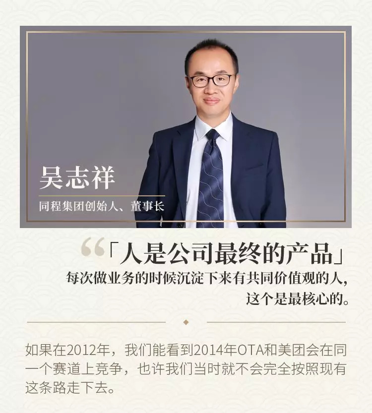 吴志祥:腾讯说「企业的成功=战略×组织能力」,所谓战略,我认为就是你准备做什么行业,能够拿到什么样的发展红利,即准备做什么,怎么做。同程最早做B2B,后来又做了订酒店、订机票、订景点门票、度假。这中间战略也是有失误的,比如放弃B2B后,做了订酒店、机票,这是对的,否则支撑不到现在300亿-400亿元的市值。但是在酒店、机票、门票、度假四个品类里,我们没有把酒店作为最核心的战略,这是失误之处。