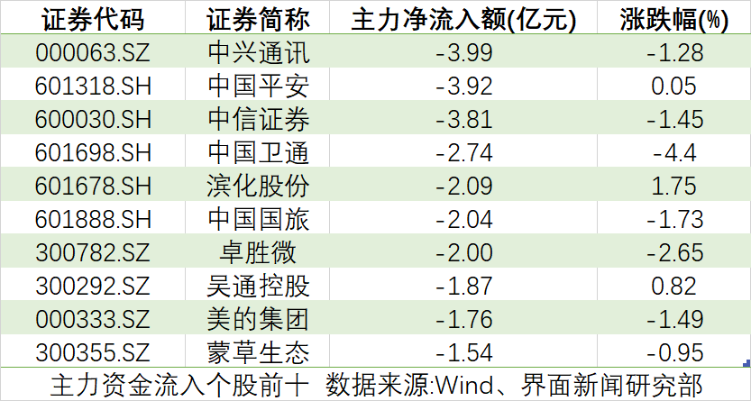 昨日和电子行业一同受到青睐的通信业今日被大力抛售,中兴通讯被抛近4亿元,跌幅超1%;中国卫通被抛2.74亿元,跌幅达4.4%;吴通控股也流出1.87亿元。