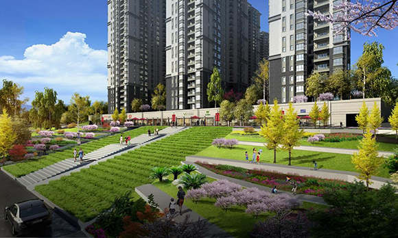 万科中天北宸台地景观因地制宜,结合地形变化而打造的,重点打造出一个约25000㎡的市政绿化公园+4个特色主题台地花园布局,通过人们的归家轨迹匀称分布,组合坡地、平地、水系各种园林元素,在创新基础上荟萃中国传统园林设计精华,使建筑藏身于树林繁花之间,真正做到移步异景,错落有致。