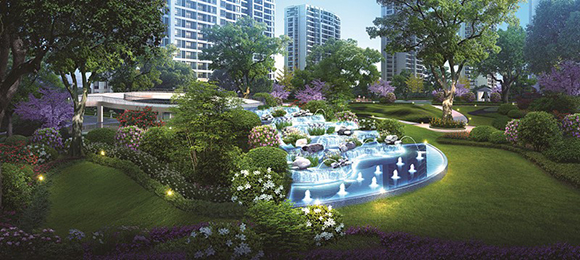 万科中天北宸在园林景观打造上巧妙运用地势高差,打造罕见的三重台地景观,每层植以乔木,打造四季长绿的郁郁园林之境。植物姿态和线条与山石、水面、建筑巧妙结合,利用各种树形的大小,树叶的疏密,花卉的色调,构成富于变化的景观,于一草一木之中,寻觅匠心,传承涵养。