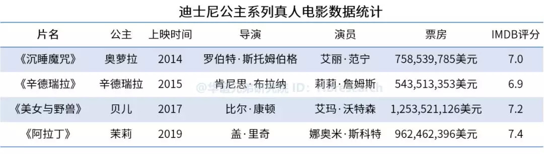 除了通过故事将公主内心展现给大众,全新公主符号的塑造还可以通过“选角”更为直观地展现。不管是饰演辛德瑞拉的莉莉 詹姆斯、饰演贝尔公主的艾玛 沃森,还是最近出演茉莉公主的娜奥米 斯科特,迪士尼公主开始不约而同地展现出当代女性越发坚定、独立的气质。这几位女演员都拥有健康的身材与偏硬朗的面部轮廓,同上世纪主流文化所欣赏的女性柔弱特征大相径庭。然而,这一“选角”层面的转变,丝毫削减不了迪士尼公主符号的深刻影响力:《沉睡魔咒1》全球票房达到7.58亿美元,被评价“表现平平”的《灰姑娘》则以9500万美元成本换回全球5.43亿美元票房,2017年真人版《美女与野兽》继《冰雪奇缘》之后又一次成为爆款,全球票房达到12.63亿美元,今年上映的《阿拉丁》全球票房已破9亿美元,票房成绩直接印证了这一迪士尼符号重建的成功。