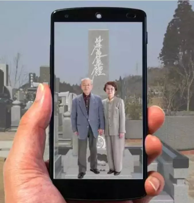 记得二维码刚刚兴起的时候就流行一个段子:人人都离不开手机,若干年后,墓碑上只刻二维码,路过时拿出手机扫一扫,一生的故事就出来了,爱过谁、恨过谁、还牵挂着谁……简称为“扫墓”。段子成真了,而且AR更高级。