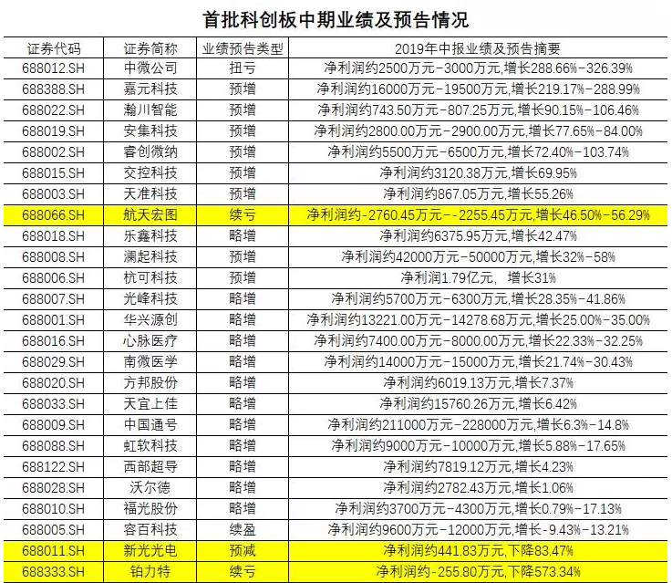 中国基金报消息,首批25家科创板企业都已经披露或预披露中期业绩。按照披露和预披露净利润增速下限来看,有15家公司业绩增速超过20%,占比达六成。其中,中微公司预告今年上半年净利润约2500万元-3000万元,增速为289%-326%;嘉元科技预告净利润约1.6亿元-1.95亿元,增速为219%-289%。当然,也有净利润大幅下滑和亏损的。新光光电净利润为442万元,降幅达83%;铂力特预告净利润为亏损256万元,再度亏损,降幅达573%。