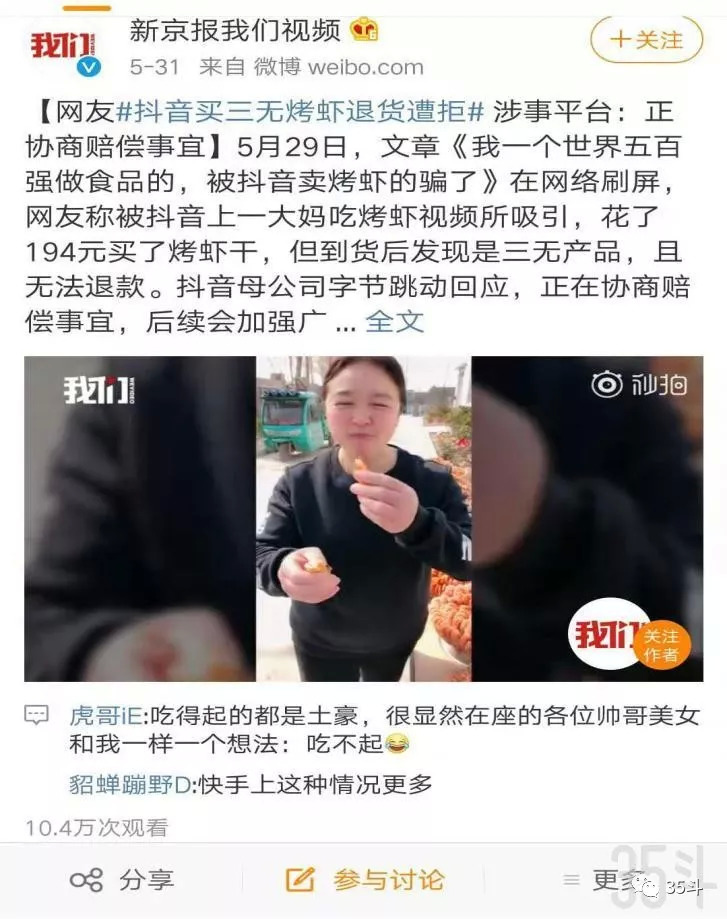5月底,一篇名为《我一个世界五百强做食品的,被抖音卖烤虾的骗了》的自媒体文章在网络刷屏。