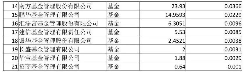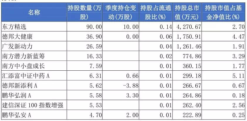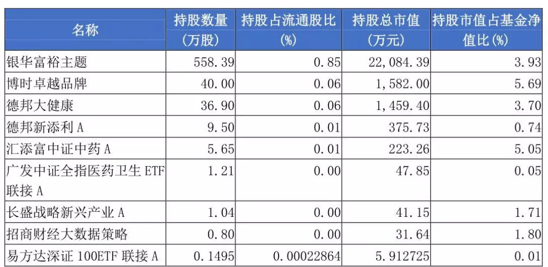 根据Wind统计,2018年年底,重仓东阿阿胶的基金共有10只,合计重仓653.6万股。其中最大的是银华富裕主题,持股数量558万股,持股市值达到2.2亿元。