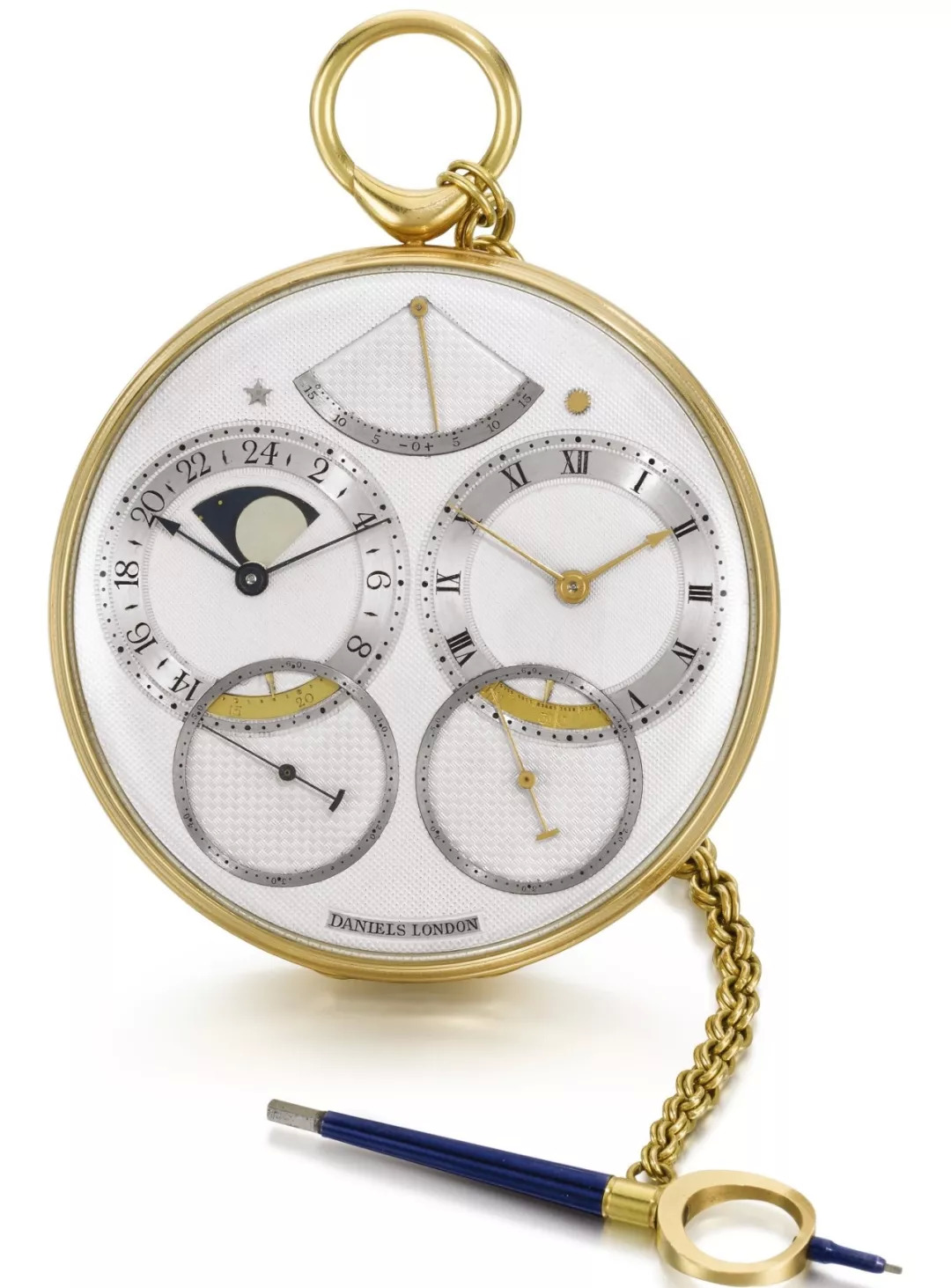 7月初,伦敦一场名为“时间杰作——高瞻远瞩:制表师传奇George Daniels”的拍卖落槌,传奇制表师做的怀表Space Traveller I,以超过360万英镑成交,成为迄今为止英国制表师制作的最贵钟表。