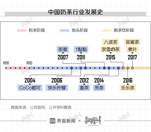 自1990年来,中国奶茶行业先后经历三大阶段:粉末阶段、街头阶段和新中式茶饮阶段。中国奶茶行业已经从刚开始的粉末冲调走向正规化、高端化。