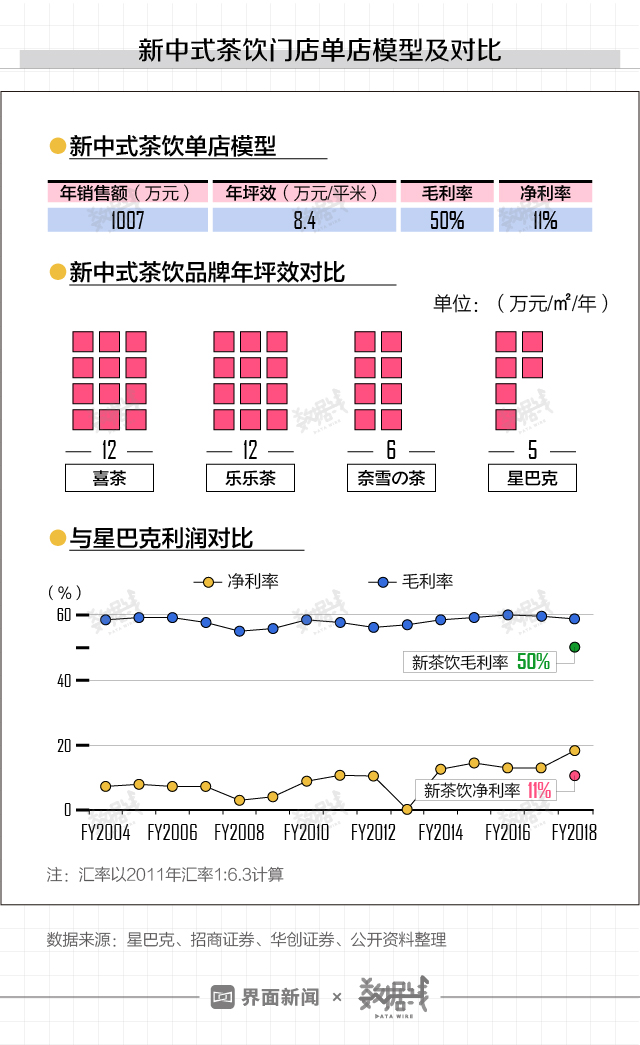 和星巴克相比,新中式茶饮的坪效虽然更高,但无论是毛利率还是净利率,仍与星巴克有一定差距。