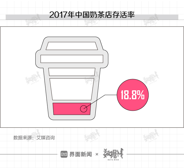 此外,艾媒咨询数据显示,2017年中国奶茶店存活率仅为18.8%,不足二成。