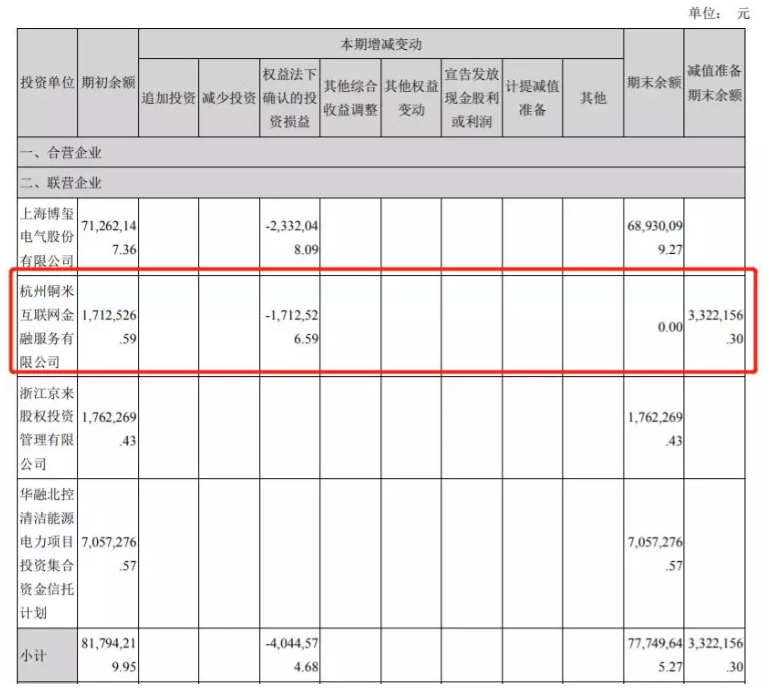 半年报显示,杭州铜米互联网金融服务有限公司业务性质为互联网金融等,中来股份直接持股27.55%。企查查信息显示,中来股份为该公司第二大股东,第一大股东为铜掌柜CEO张焱,持股49.4%。