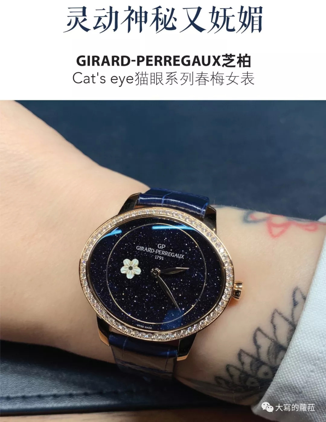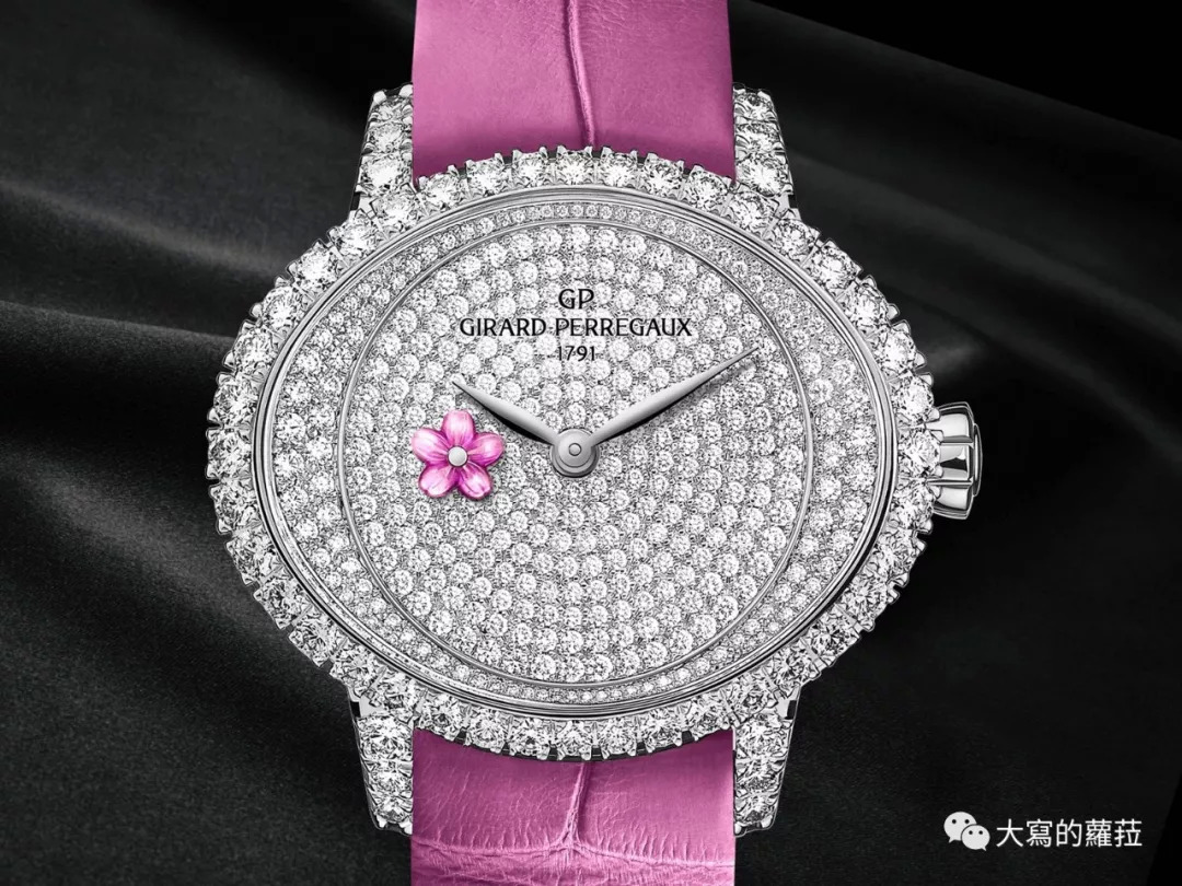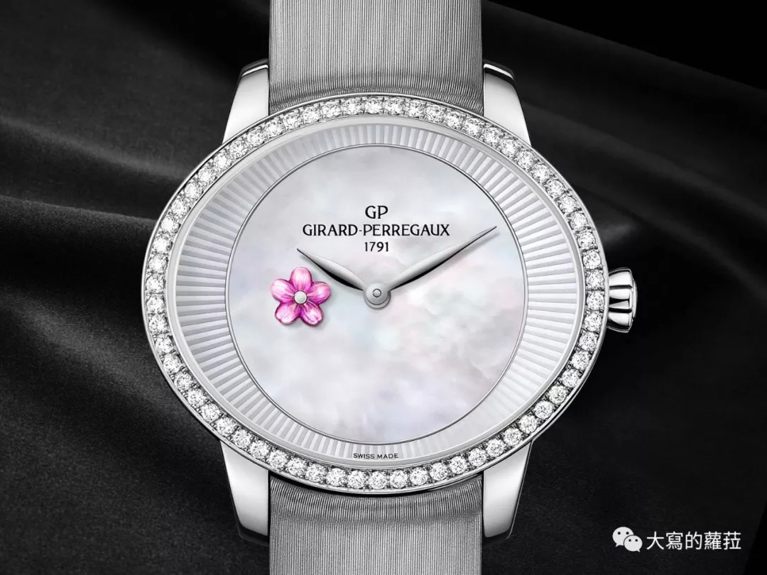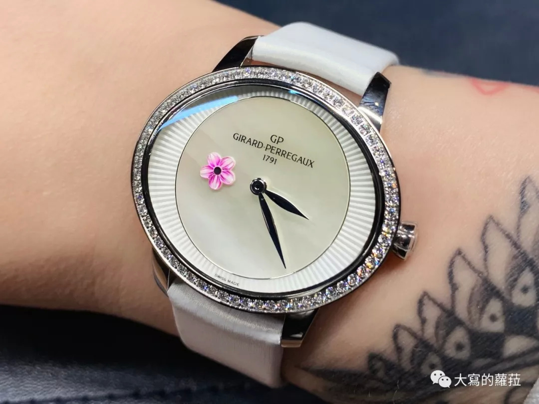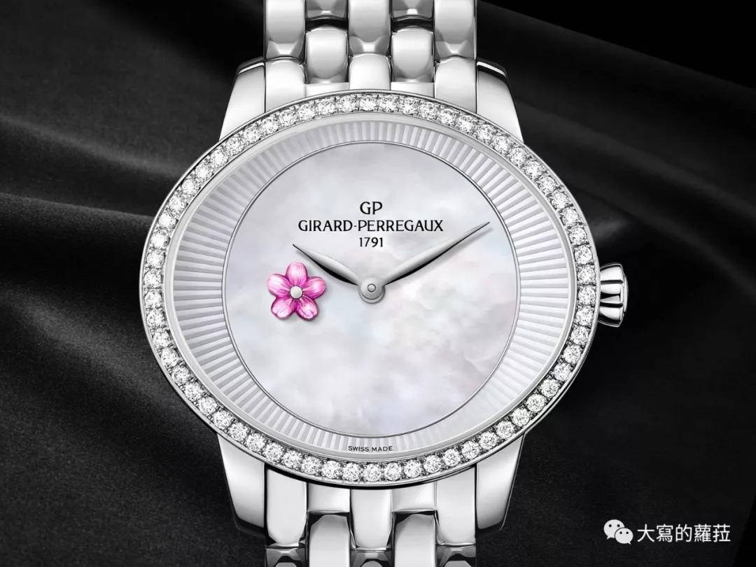 好的女表的设计有两个重要原则:好看,以及让女人更好看。芝柏的猫眼系列是芝柏最重要的女表系列,以猫眼为其命名一来在于符合椭圆形表壳的设计,二来则是强调如猫眼一样魅惑又神秘的女性特质。这款猫眼系列春梅腕表的9点钟位置加入了不断转动的金雕小花(秒针),这个吸引女性的可爱小趣味设计,对凸显女性特质则是大大的加分,砂金石面盘点点隐约的闪光,不仅浪漫也娇媚神秘,佩戴起来也很衬女性纤细白晰的肤色。