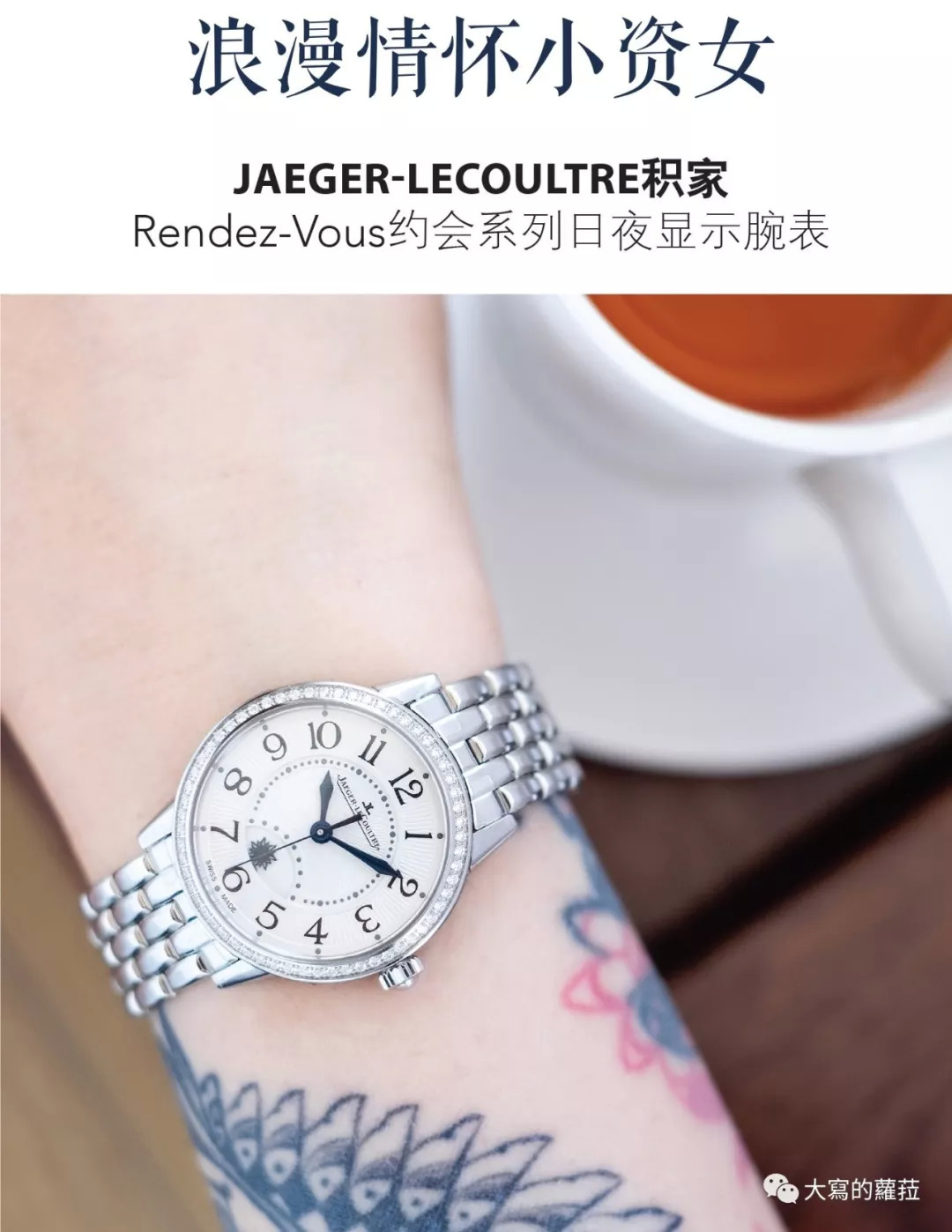 积家的约会系列严格说起来是个中规中矩的女表设计,适切的圆形表壳、俐落且打磨不失细腻的表耳线条、现代感的阿拉伯数字字体,搭载积家自家研发设计的自制机芯,适合追求事业成就且做事有条不紊的小资女,且积家赋予约会系列实用的日夜显示功能,柔美的设计点出每位女性心中藏着的浪漫情怀。
