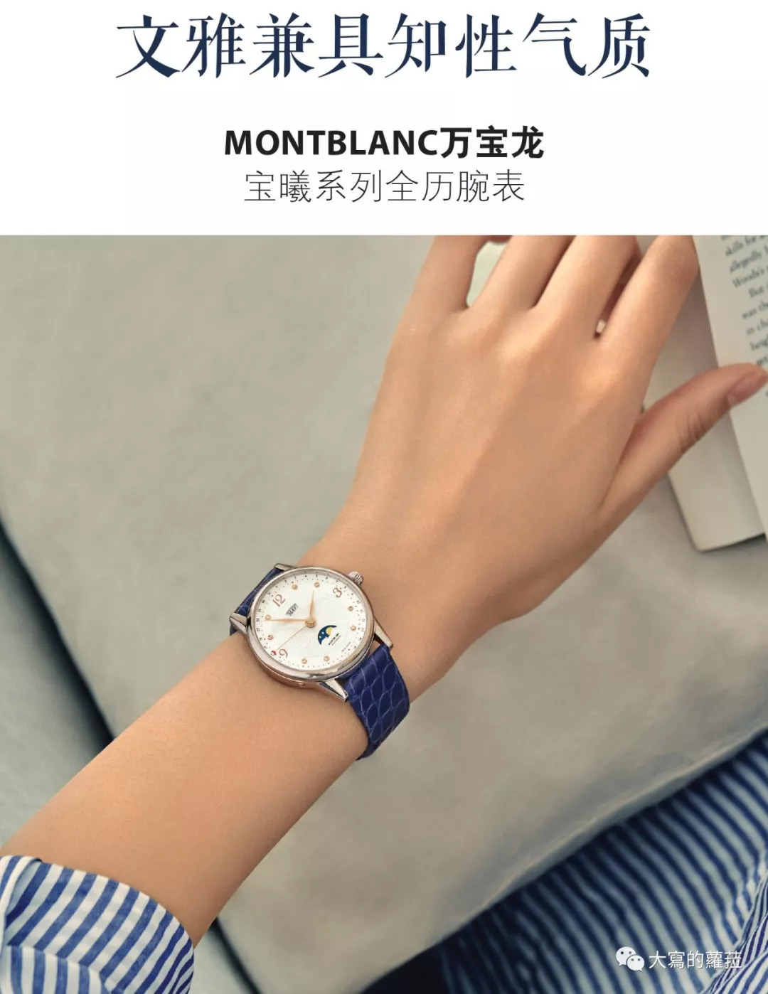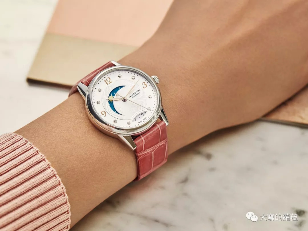 万宝龙的宝曦系列在设计风格上简约平实,相当适合性格低调娴静又带点知性气息的女性选择佩戴。喜欢简单功能的女性可以选择带日期窗的自动款式,而在所有宝曦系列中最具特色的款式,是盘面中央有个大型月形视窗的昼夜显示功能款,实用性高的则是具有月份、月相、日期显示的全历腕表,盘面上点缀有8颗钻石,为宝曦系列增添些许精致柔美气息,整体而言宝曦系列在定价、机芯性能与设计上,都是相当不错的选择。