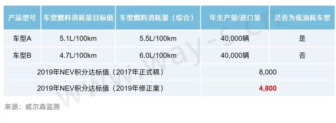 (2019年企业平均燃料消耗量要求为110%,NEV积分比例要求为10%)