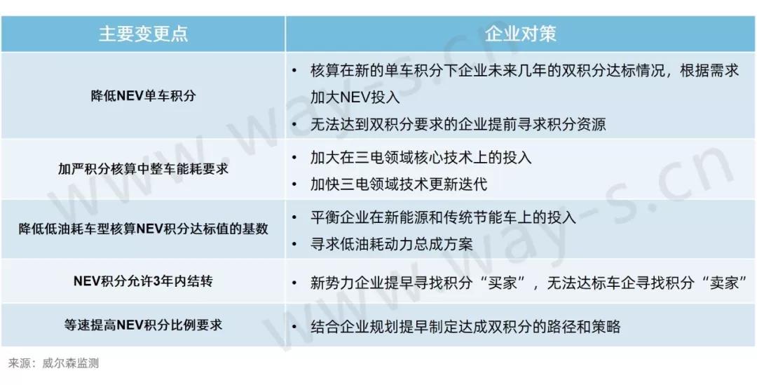 从本次变更点来看,本次《积分办法》修正案主要纠正了对新能源汽车的过度倾斜,重视节能汽车与新能源汽车的协调发展,并强化对整车先进性指标的考核。同时提出未来三年的达标要求,以供车企提早规划应对。