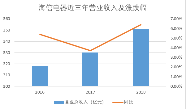 研报分析,这主要是因为,国内市场需求持续低迷。公开数据显示, 2017年我国彩电零售销量4752万台,较2016年同比下滑6.6%,这是自2003年以来,彩电销量下跌最大的一年。2018年,中国彩电市场似乎开始止跌回升,市场零售量同比微增0.5%,销售规模达4774万台,但另一方面,零售额规模仅为1490亿,同比下降8.6%。受此影响,2018年海信电器经历第三年国内多媒体业务负增长。