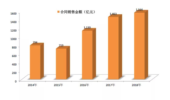 据文軒实验室综合其公布的年报数据统计来看,在2015年业绩小幅回落后,2016年,全年合同销售额达到1139亿元,2018年全年合同销售业绩达到1564亿元。