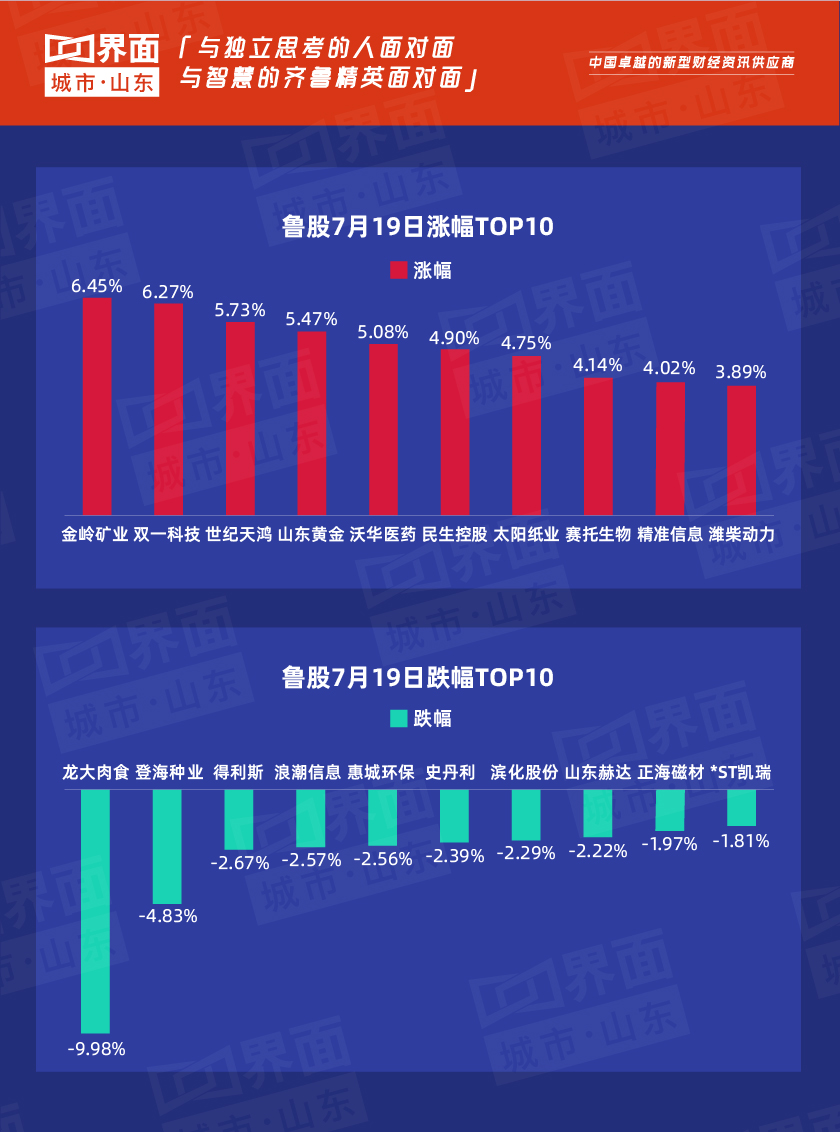 7月19日,山东省内沪深股票有99只个股看涨,88只下跌,13只与上一个交易日收盘价持平,中宠股份因公司内部变动停盘;