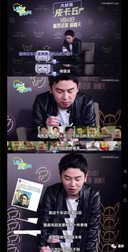 前一秒,他刚说“别再给我截表情包了,我也是一个很深刻的艺术家”,后一秒就坦诚自己的手机里大概有30个自己的表情包,“怼人那种偏多”。