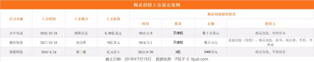 在投资和投后管理上的投入,也反映在梅花创投的「成绩单」中,至今梅花创投有 3 起上市退出,7 起并购退出案例。
