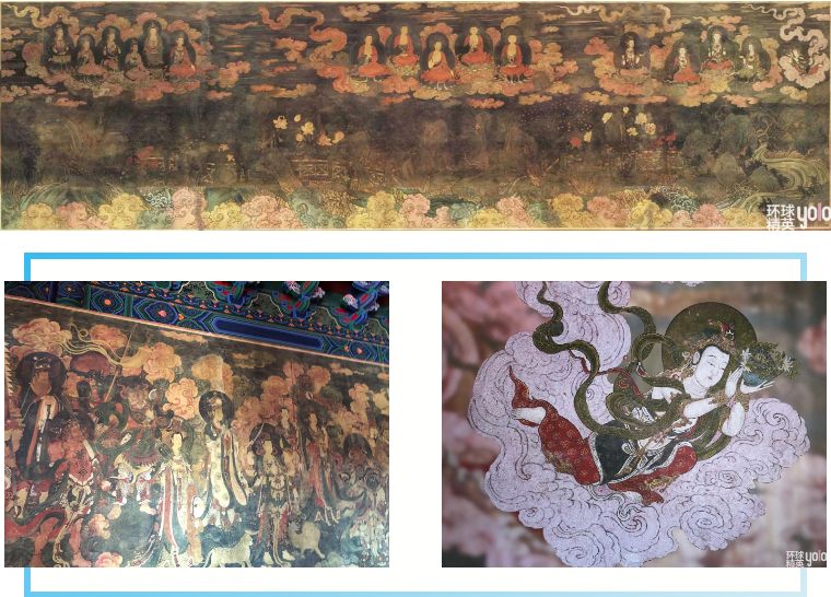 法海寺壁画除了精工重彩,还采用了特别的技法,叫做沥粉堆金。被“沥粉”的线条带有一定的厚度和立体感,显得更加鲜活饱满;堆金,自然更加辉煌灿烂。这些作品完成之时,西方恰好正经历文艺复兴。与当时欧洲的代表性壁画相比,法海寺壁画毫不逊色。不同于西方绘画通过进一步描绘人体的肌肉组织,来丰富总体艺术感受,法海寺壁画仅通过极其简单的几根线条,不仅把手的丰满、优美姿态勾画出来,而且让人感到有活气和立体感。
