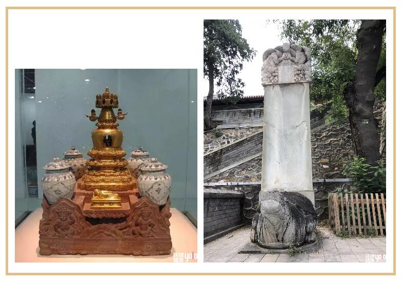 法海寺花了五年的时间修建,十年之后,65岁的李童走到了生命的终点。此时,他已经侍奉了第五位皇帝景泰帝。他重病时做的最后一件事,是将一座鎏金藏式佛塔送给了正在重建南京古寺佛窟寺的大太监王瑾。这尊佛塔如今保存在南京博物院中,是馆里的镇院之宝之一,塔座背面刻有“佛弟子御用监太监李福善奉施”——福善就是李童的佛家法名。
