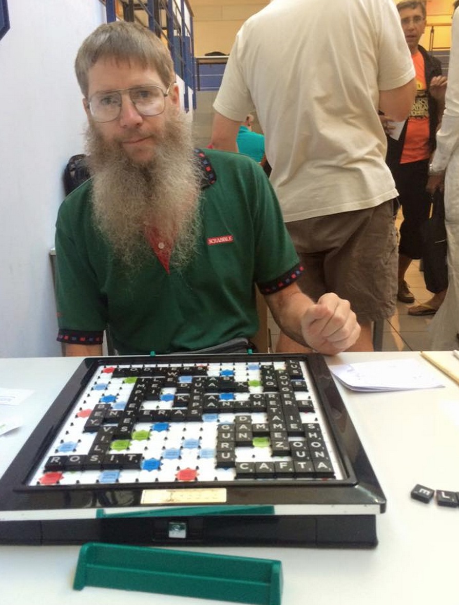 他叫Nigel Richards,48岁,来自新西兰,对于法语的掌握,仅限于“bonjour”(“你好”)和数数。但在最近的世界法语拼字大赛(Francophone World Scrabble Championships)上,他打败了很多说法语的选手,摘得了总冠军。