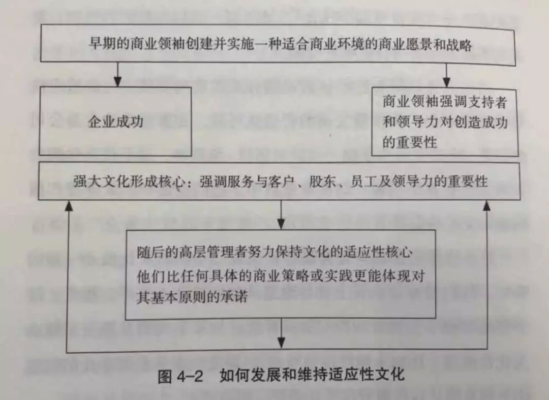 在有极高凝聚力、共同认可的强企业文化概念之外,科特在这本书里也提到了管理学界中“适应性文化”的概念,也就是不存在一种放之于四海皆准的企业文化——企业文化必须与自己所的行业“相适应”,而一种企业文化只有在符合其所在行业需求的时候,才能被称之为“好”的企业文化。