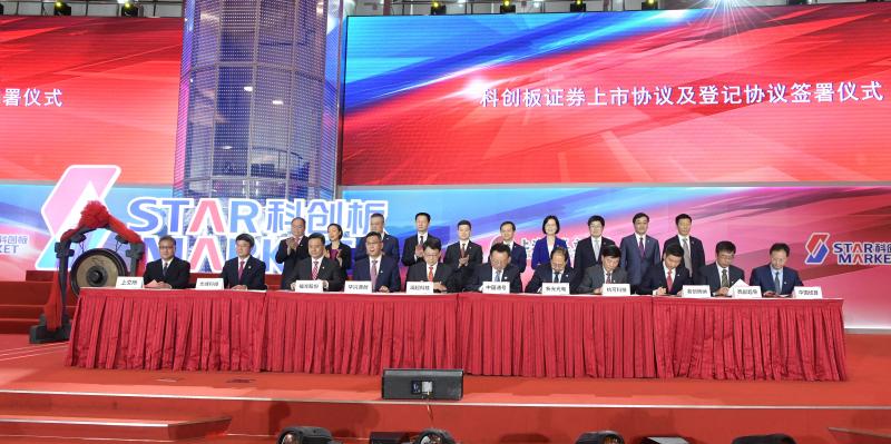 中国证监会副主席李超、上海证券交易所理事长黄红元分别致辞。科创板首批上市公司同上海证券交易所、中国证券登记结算有限责任公司签署上市协议和登记协议。