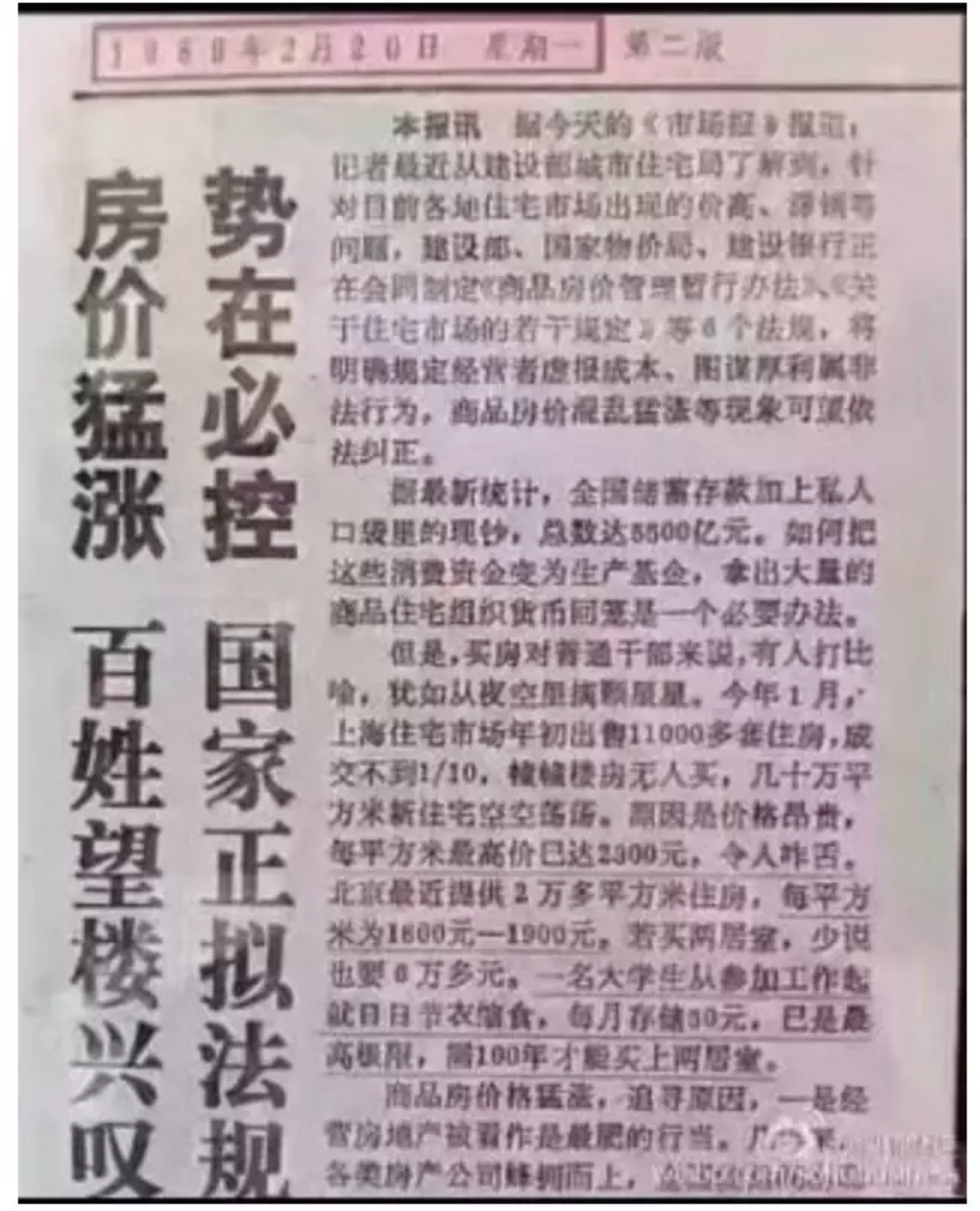 上图是是1989年的《人民日报》的一个截屏。30年前我们房价就在涨、就在调控,今天房价还是有上涨点,还在调控。于是就引出一个问题,我们如何看待这个房地产调控?那么换一个表达,这个表达可以更到位一点,就是越调越高,越高越调,它到底是为什么?是不是一个没有意义的事情?
