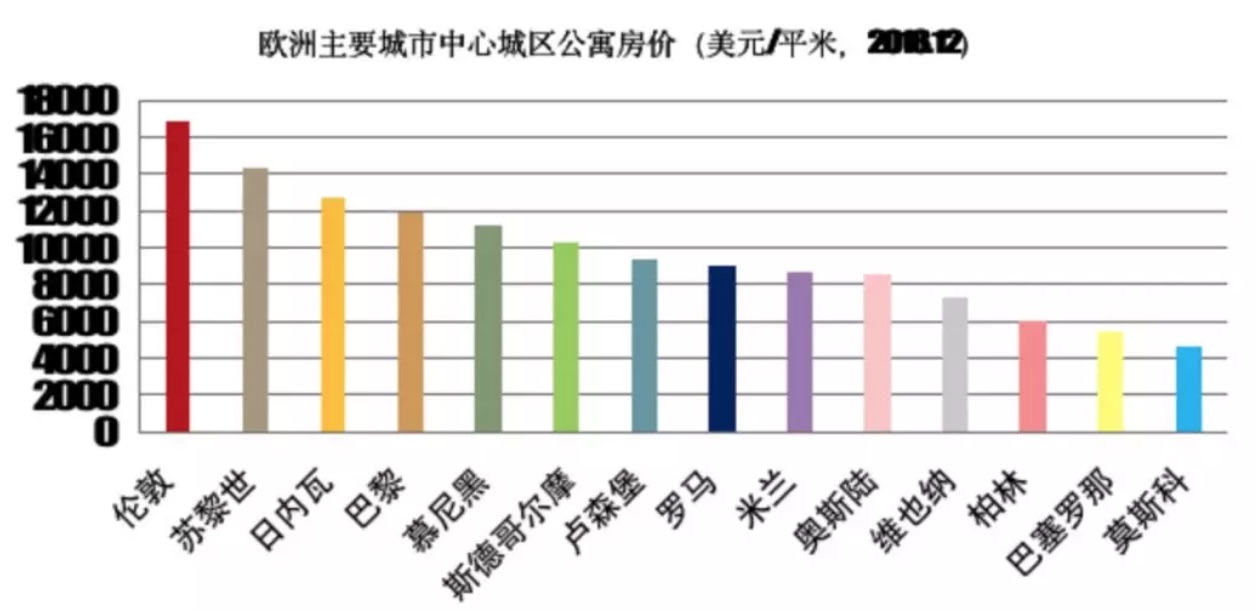 金融危机以后,德国大城市的房价涨得很快。2012年到2018年,欧洲主要城市的房价涨幅,第一是柏林,第二是慕尼黑。德国的房子作为一种重要的资产,就受到追捧,涨得很快。