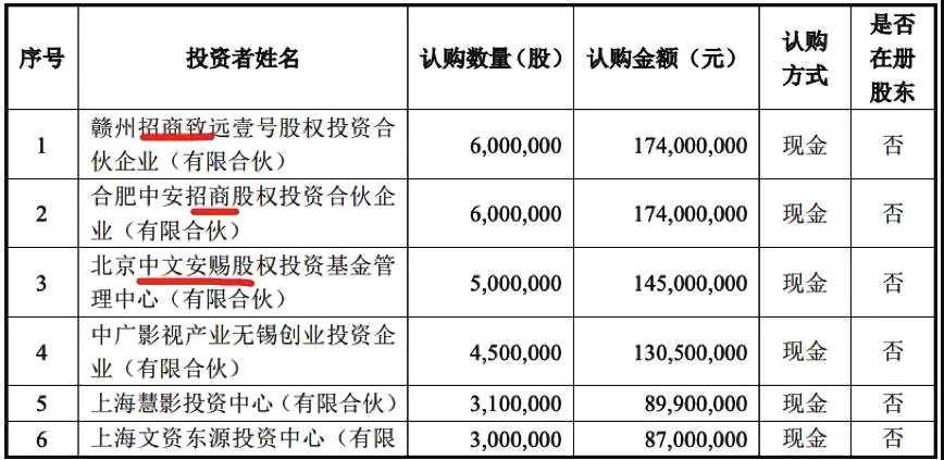 从这14名投资者名单可以看出,国资背景的投资者有相当重要的地位。例如招商系合计出资3.48亿元;北京中文安赐基金(国务院旗下的中国国新控股持有33%)出资1.45亿元;新华网出资7540万元;广东国资委旗下的恒健创投出资5800万元。值得一提的是,微影时代旗下的中骏微影基金也出资了2610万元。