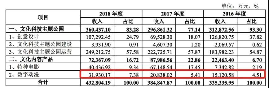 从营收增幅来看,文化科技主题公园增幅由2017年的-5.12%变为2018年的21.42%;文化内容由2017年的291.69%暴跌至-17.75%,主要受特种电影增幅(由814.48%变为-39.78%)下滑所致。