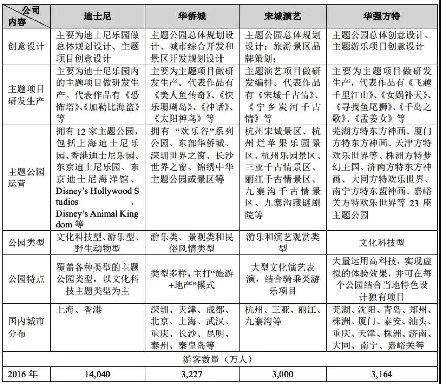 国内竞争方面,主要对手包括华侨城、宋城演艺、长隆集团。按照招股书提供的数据显示,华强方特的游客数量比宋城演艺多,但比华侨城少,但这三者总和都没有迪士尼中国多。