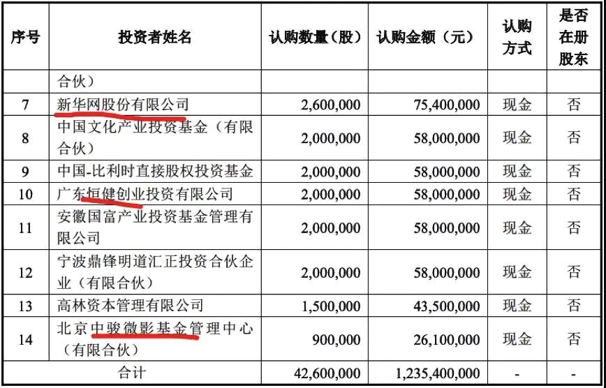 2016年1月,其向14位特定投资者以29元/股发行了4260万股,募集资金总额12.35亿元,扣除各项费用后的净额为12.19亿元。