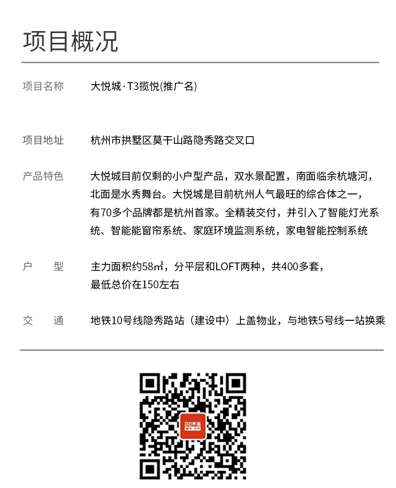 所以,对普通购房者来说,T3揽悦,是杭州大悦城仅存的可售产品了。