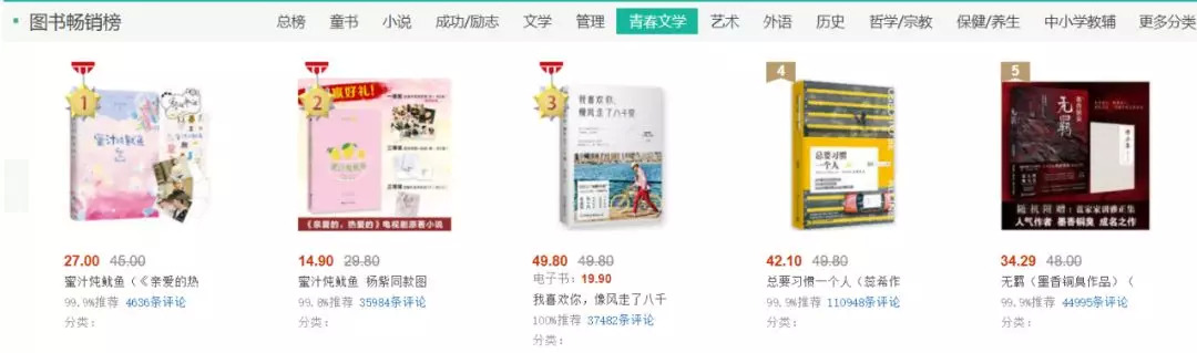 1.IP热度+原著加盟。《亲爱的,热爱的》原著《蜜汁炖鱿鱼》本来就有大量的书粉,目前在当当网的青春文学畅销榜上《蜜汁炖鱿鱼》已经霸占了销量的前两位,可见其热度之高。同时,《蜜汁炖鱿鱼》的作者墨宝非宝也亲自作为编剧进行《亲爱的,热爱的》的创作,也在很大程度上保证了剧集的细节还原。