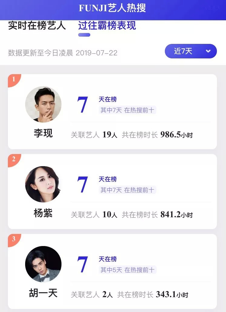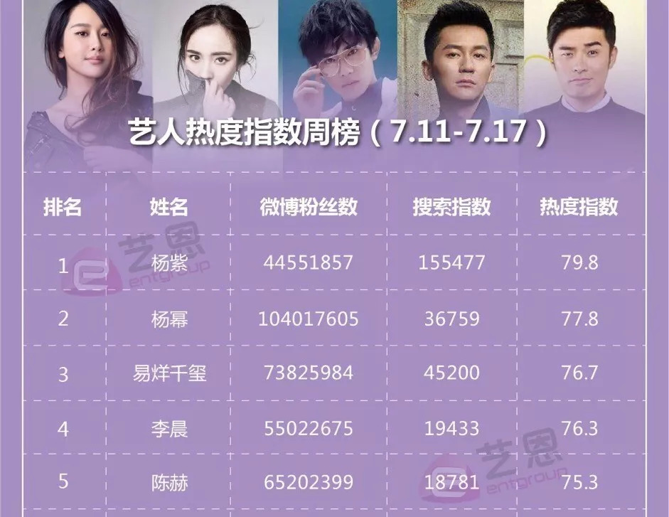 杨紫登顶艺人热度周榜 李现日均6条热搜